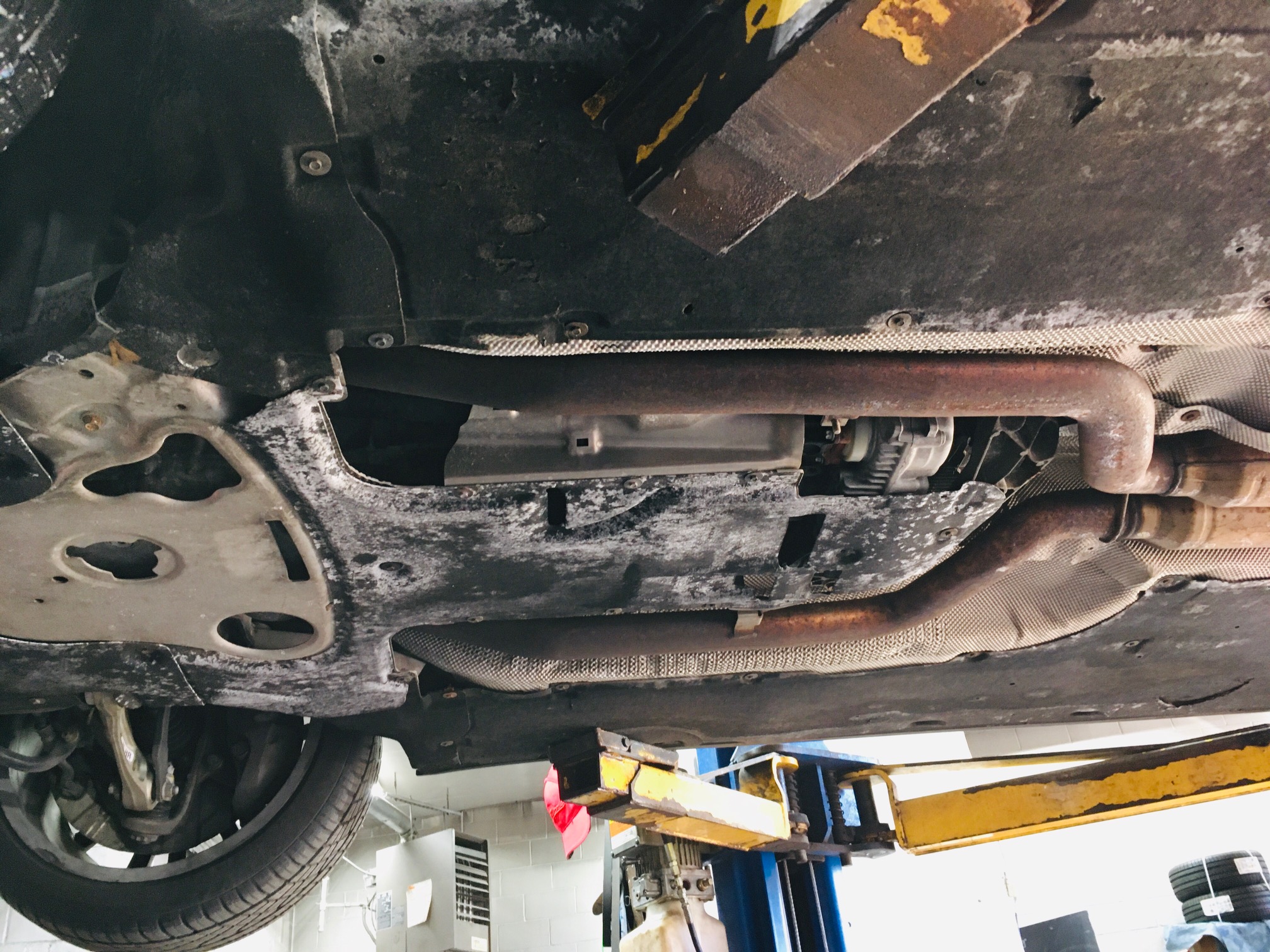 Hope all is well. I see that part of the underbody cover circled is torn off, but is anything else missing from the underside pictured? These panels are so fragile! :| Thank you. |