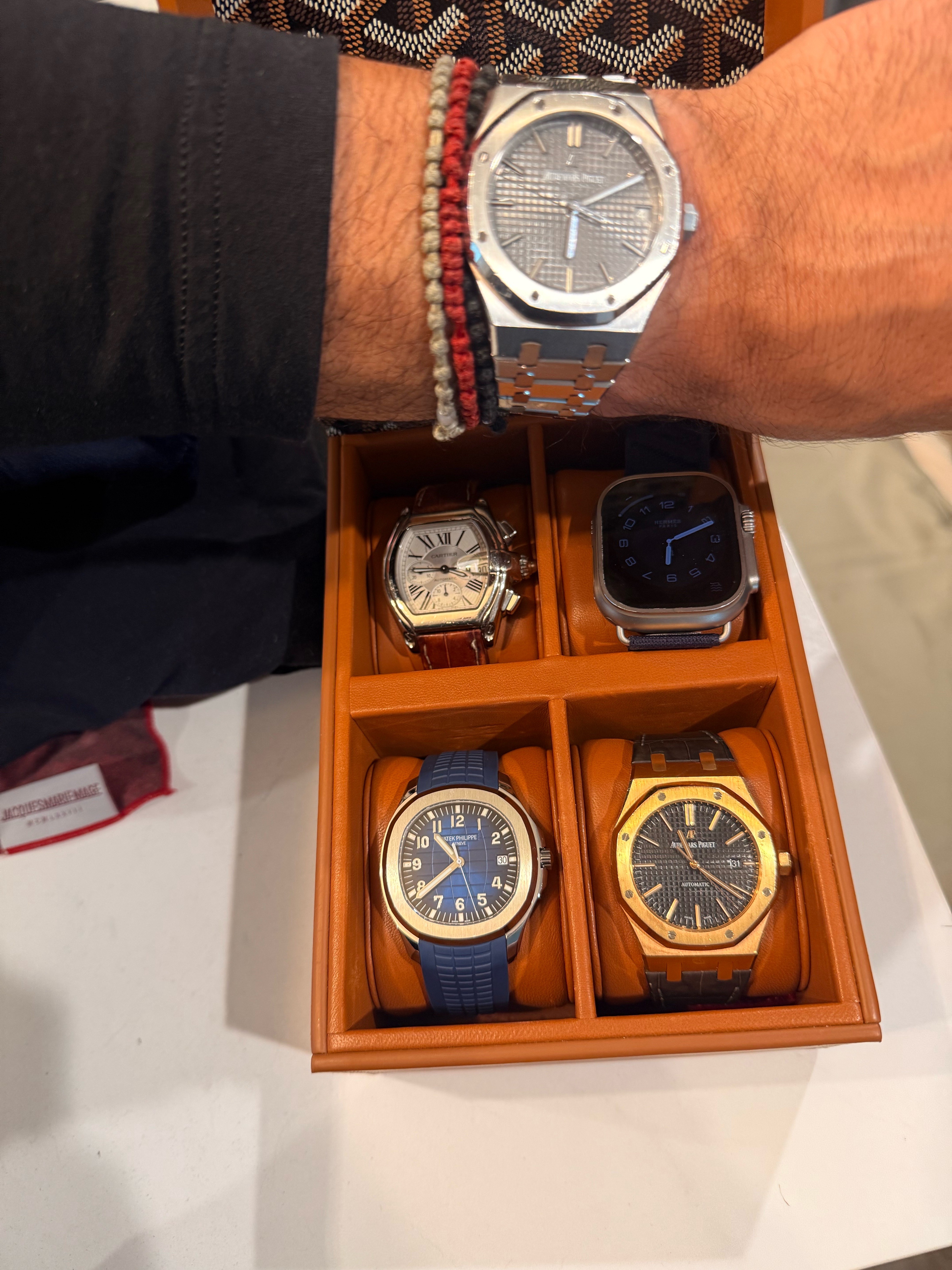 Here’s a picture of my current timepiece set up. Patiently waiting the phone call from my AP boutique for my holy grail…